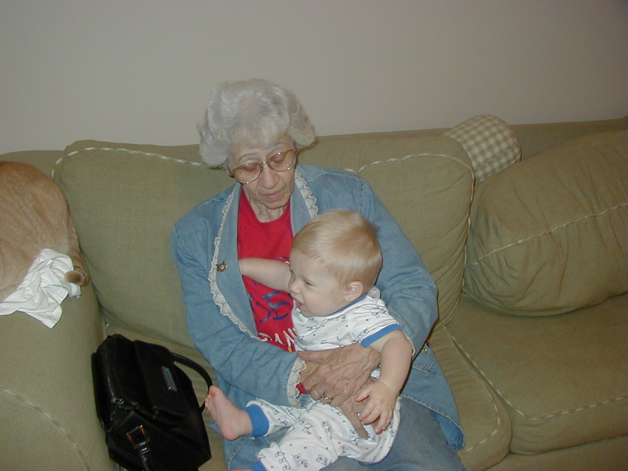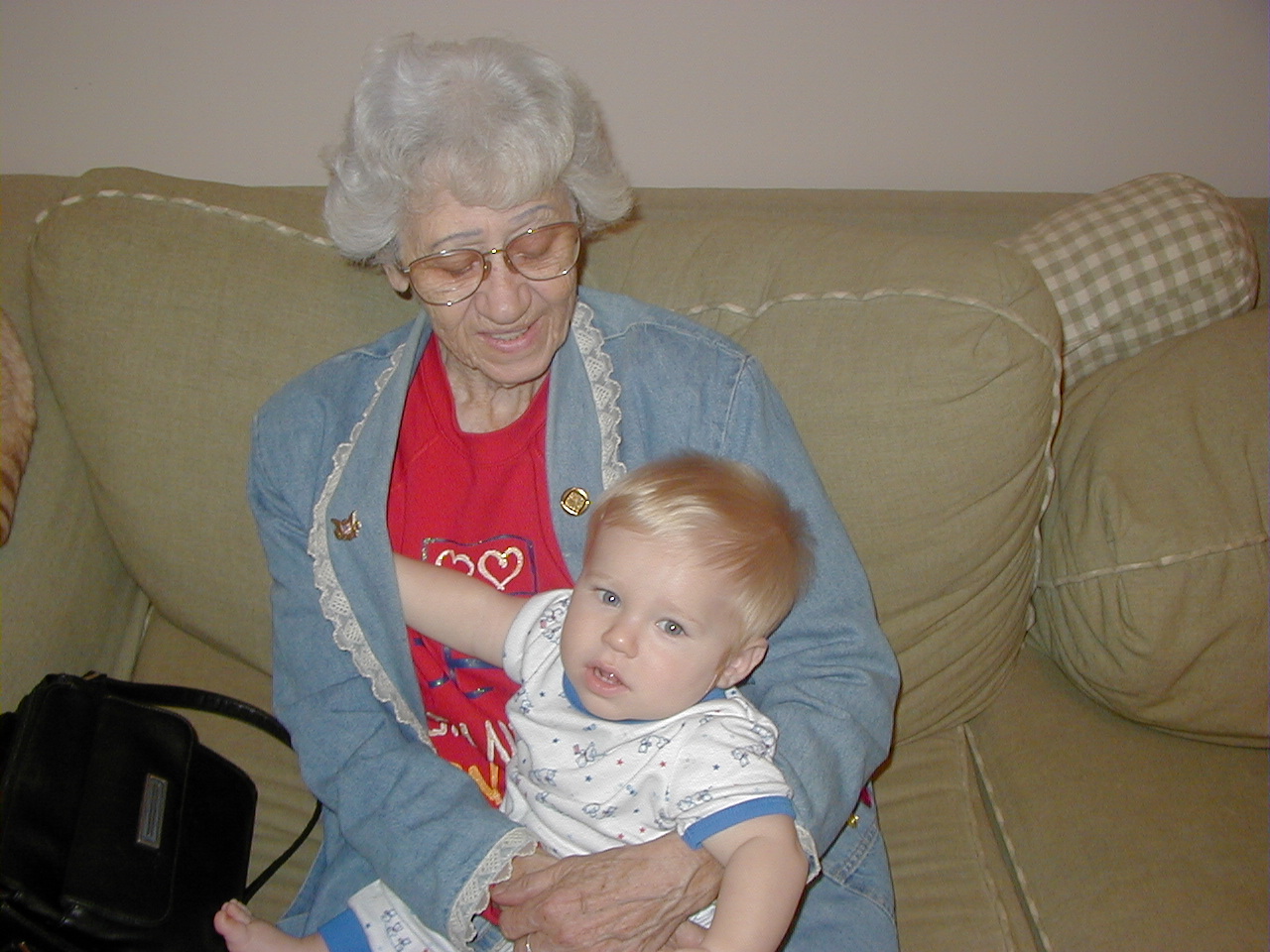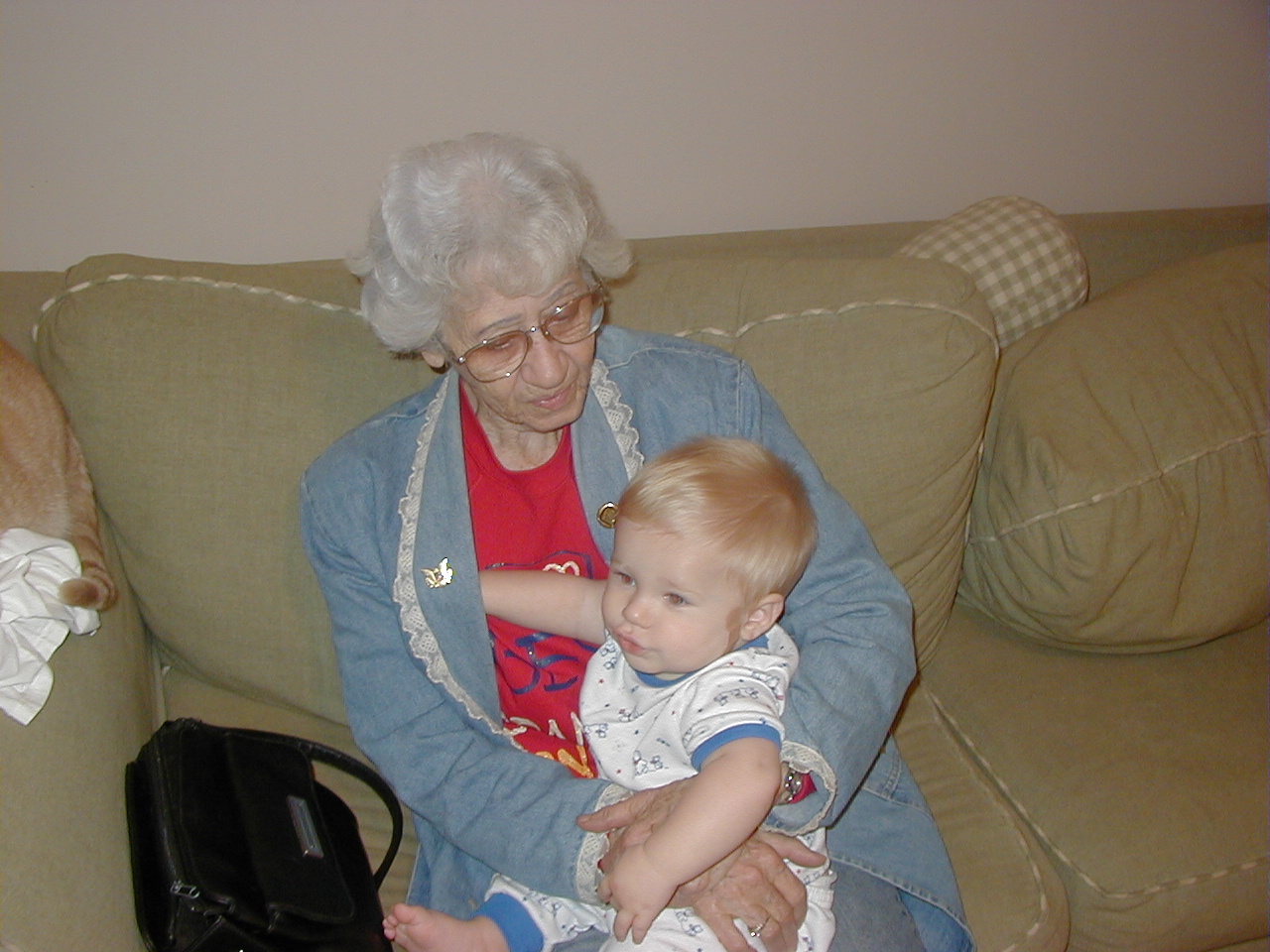 Grandma Hayward holding Jacob, Closer Shot