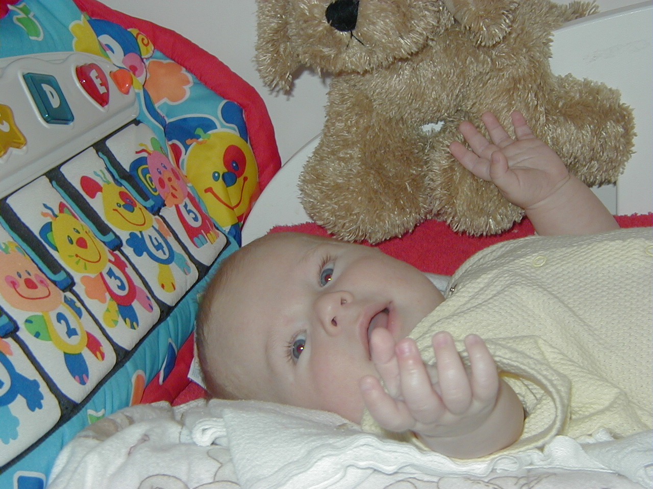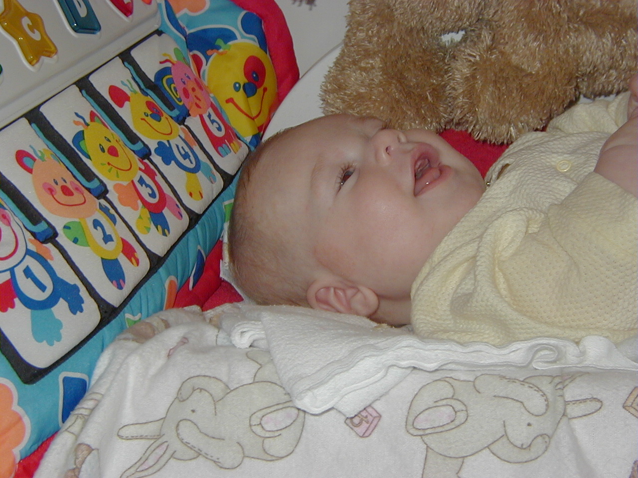 Jacob - Sleeping in cute yellow squirrel outfit.